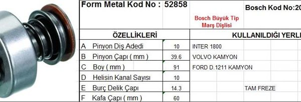 MARŞ DİŞLİSİ 10 DİŞ 10 KANAL BOSCH TİPİ MERCEDES 190 200 DIZEL TAM FREZE (1 AD )
