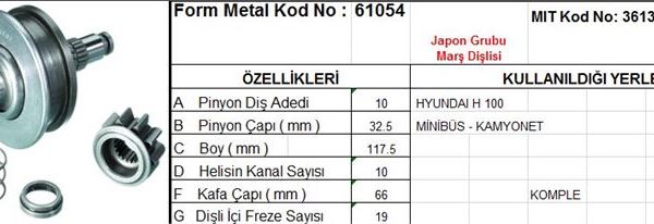 MARS DISLISI MITSUBISHI L200,L300 10DİŞ 8KANAŞ HYUNDAI H100 H1 FORD RANGER (1 AD )