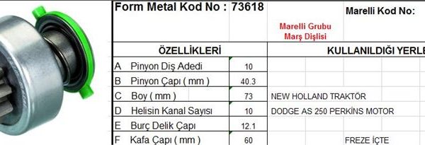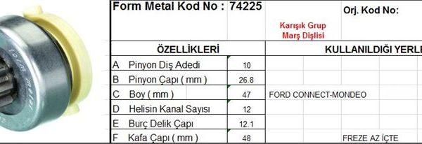 MARŞ DİŞLİSİ 10 DİŞ 12 KANAL FORD CONNECT MONDEO FREZE AZ ICTE (1 AD )