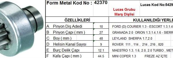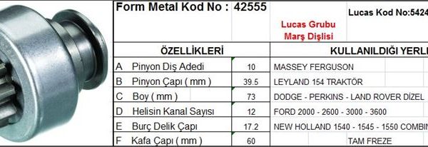 MARŞ DİŞLİSİ 10 DİŞ 12 KANAL LUCAS TİPİ MASSEY FERGUSON PERKINS LAND ROVER FORD DODGE/JCB/LAND ROVER LUCAS TYP DS=10 DKÇ=40 BOY=73 KS=12 BDÇ=17 GÇ=60 (1 AD )