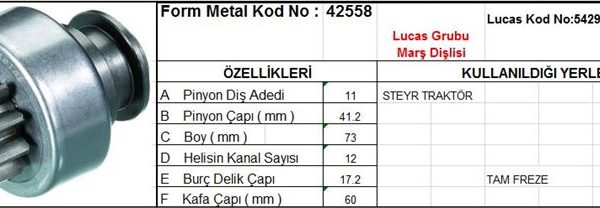 MARŞ DİŞLİSİ 11 DİŞ 12 KANAL LUCAS TİPİ TZDK STEYR TRAKTOR TAM FREZE (1 AD )