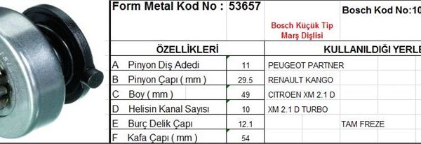 MARŞ DİŞLİSİ 11 DİŞ 10 KANAL BOSCH TİPİ PEUGEOT PARTNER RENAULT KANGO CITROEN XM TAM FREZE DS=11 DKÇ=29,5 BOY=49 KS=10 BDÇ=12 GÇ=54,5 (1 AD )