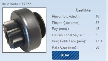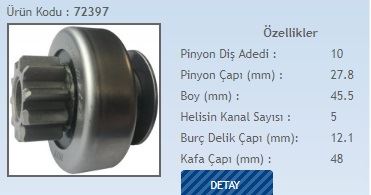 MARŞ DİŞLİSİ 10 DİŞ 10 KANAL MARELLI TİPİ NEW HOLLAND DODGE AS250 PERKINS MOTOR FREZE İÇTE DS=10 DKÇ=40 BOY=73 KS=10 BDÇ=12 GÇ=62 (1 AD )