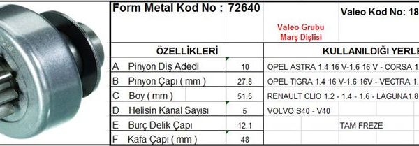 MARŞ DİŞLİSİ 10 DİŞ 5 KANAL VALEO TİPİ OPEL ASTRA CORSA RENAULT CLIO LAGUNA VOLVO S40 TAM FREZE VALEO TYP DS=10 DKÇ=28 BOY=51,8 KS=5 BDÇ=12 GÇ=49 (1 AD )