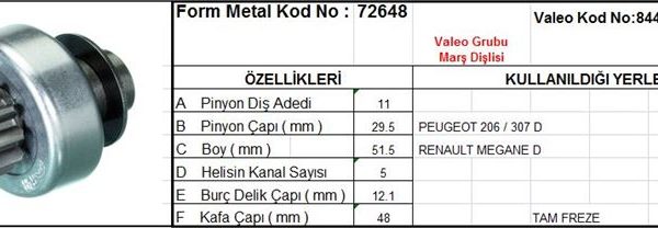 MARŞ DİŞLİSİ 11 DİŞ 5 KANAL VALEO TİPİ PEUGEOT 206 307 RENAULT MEGANE TAM FREZE (1 AD )