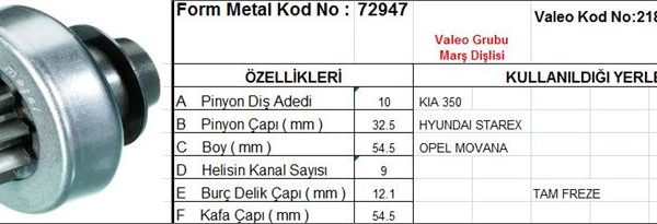 MARŞ DİŞLİSİ 10 DİŞ 9 KANAL VALEO TİPİ KIA 350 HYUNDAI STAREX OPEL MOVANO RENAULT MASTER TAM FREZE (1 AD )