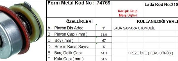 MARŞ DİŞLİSİ 11 DİŞ 6 KANAL LADA SAMARA FREZE İÇTE TERS DONUSLU T.DÖN. DS=11 DKÇ=29,5 BOY=66,5 KS=6 BDÇ=14 GÇ=53 (1 AD )