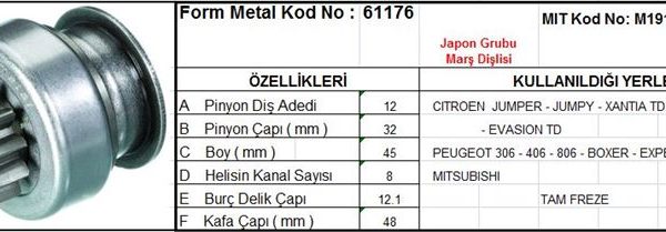 MARŞ DİŞLİSİ 12 DİŞ 8 KANAL JAPON TİPİ CITROEN JUMPER XANTIA PEUGEOT BOXER 306 406 806 TAM FREZE DS=12 DKÇ=31,8 BOY=51,6 KS=8 BDÇ=12 GÇ=46,8 (1 AD )
