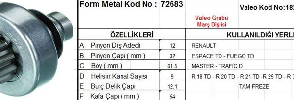 MARŞ DİŞLİSİ 12 DİŞ 9 KANAL VALEO TİPİ RENAULT ESPACE MASTER TRAFIC R18 R25 R21 TAM FREZE (1 AD )
