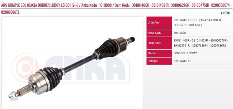 ON AKS KOMPLE SOL DOKKER-LODGY 1,5DCI K9K 12=>) (1 AD )