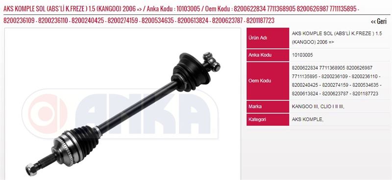 ON AKS SOL ABSLI KANGOO-CLIO 1,5 DCI 06–> (DIS FREZE:23-ABS HALKA DIS SAYISI:44-UZUNLUK:630) (1 AD )