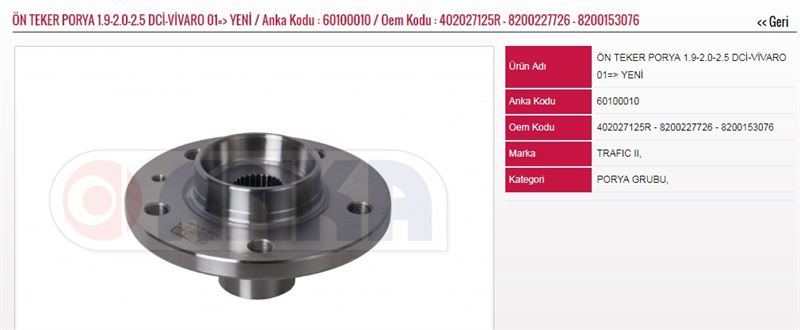 ÖN TEKER PORYA 1.9-2.0-2.5 DCİ- 01=> YENİ RENAULT TRAFIC II (1 AD )