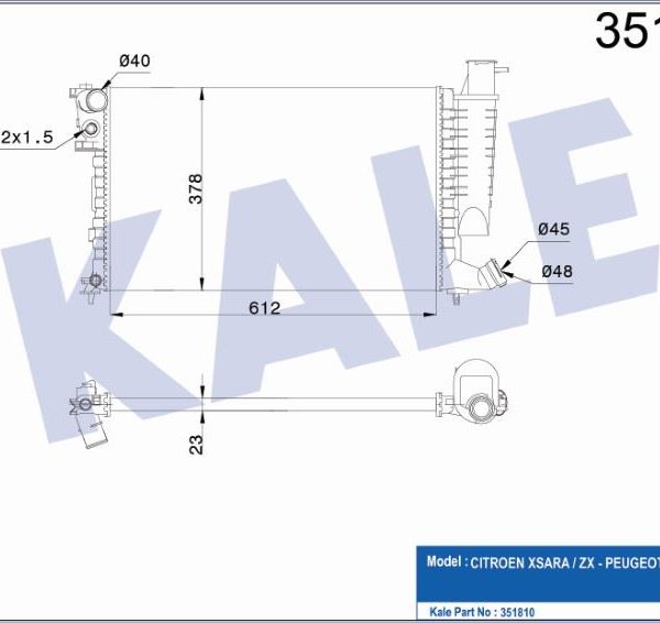 RADYATÖR CITROEN C5 1.6 HDİ/TDİ – PEUGEOT 407 1.6 HDİ/TDİ 2.2 İ – 16V. RADYATÖR 1 SIRA AL-BR SİSTEM (1 AD )