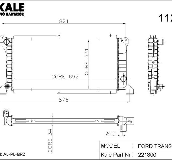 RADYATÖR FORD TRANSIT T15/19 YM. TURBO 1 SIRA ALÜMİNYUM UZUN BRAZİNG SİSTEM (1 AD )