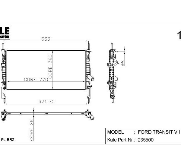 RADYATÖR FORD TRANSIT T-12/15/19 1 SIRA ALÜMİNYUM BRAZİNG SİSTEM (1 AD )