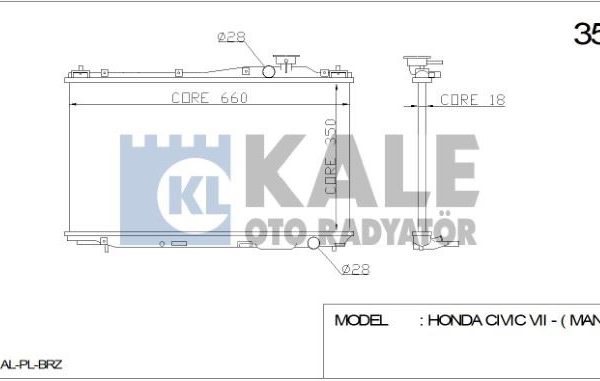 RADYATÖR HONDA CIVIC VII 1.4-1.6 16V 01–>(MT) (350*658*16) AL/PL/BRZ (1 AD )