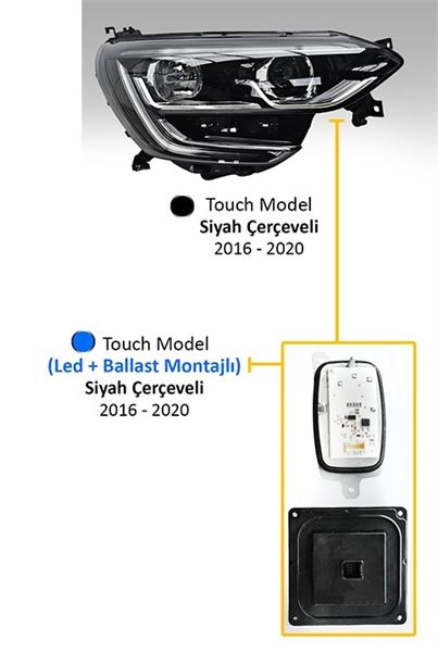 FAR MOTORLU SAĞ RENAULT MEGANE IV 2017- TOUCH MODEL SİYAH ÇERÇEVELİ (LED+BALLAST) (1 AD )