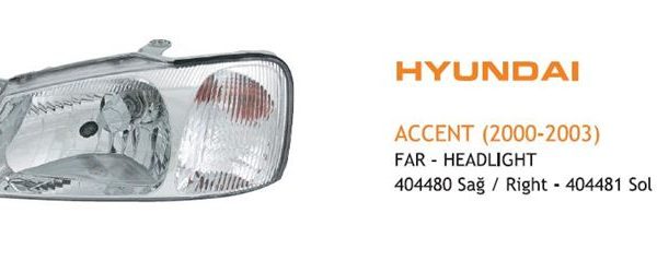 FAR SAĞ MOTORSUZ HYUNDAI ACCENT (2003-04) SARI SİNYALLİ (1 AD )