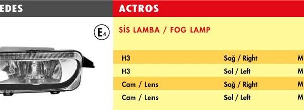 SİS LAMBA MERCEDES ACTROS / SAĞ (AVRUPA TİP) (1 AD )