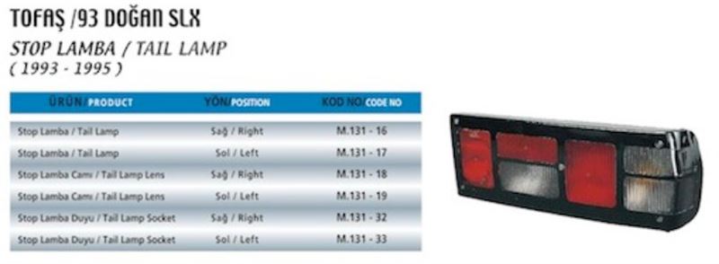 STOP LAMBA 93 FIAT DOĞAN SLX SAĞ (1 AD )