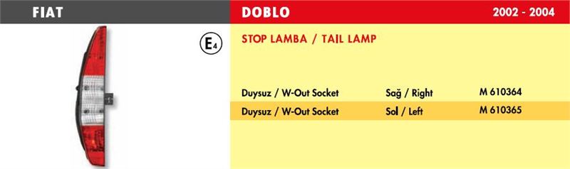 STOP LAMBA FIAT DOBLO / SAĞ (2002-2006) (DUYSUZ) (1 AD )