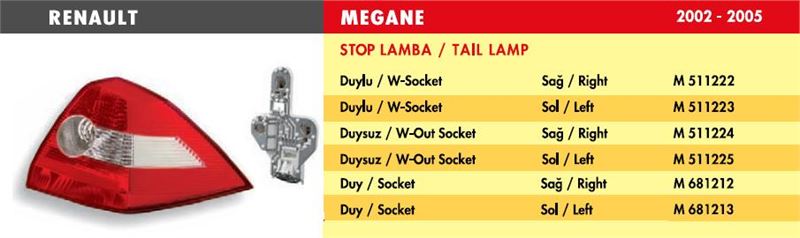 STOP LAMBA RENAULT MEGANE / SAĞ (2003-2006) (DUYSUZ) (1 AD )