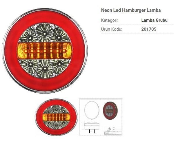 12V NEON LED HAMBURGER STOP LAMBASI 4 FONKSİYONLU ( Stop , Park, Geri, Sinyal ) (1 AD )